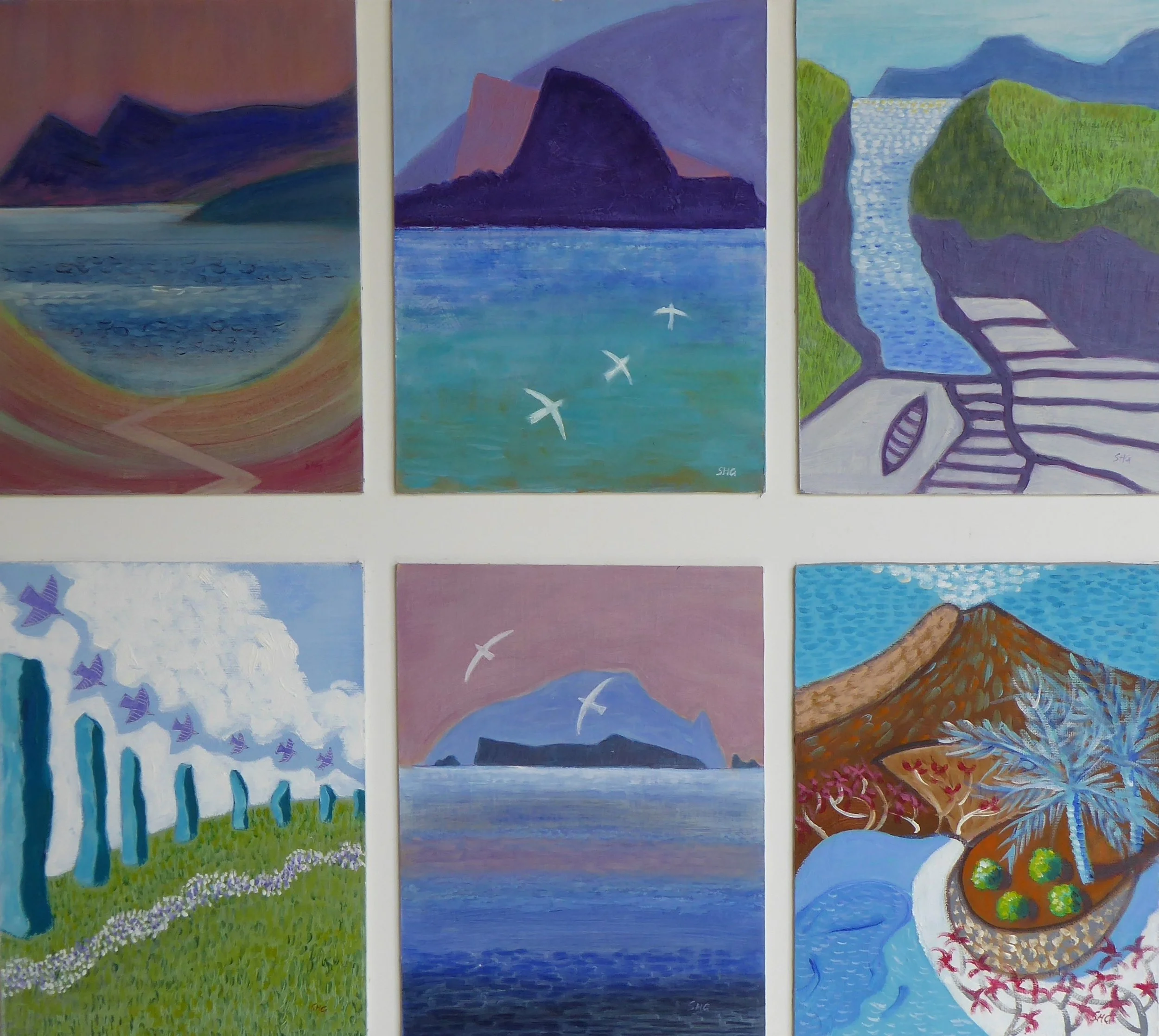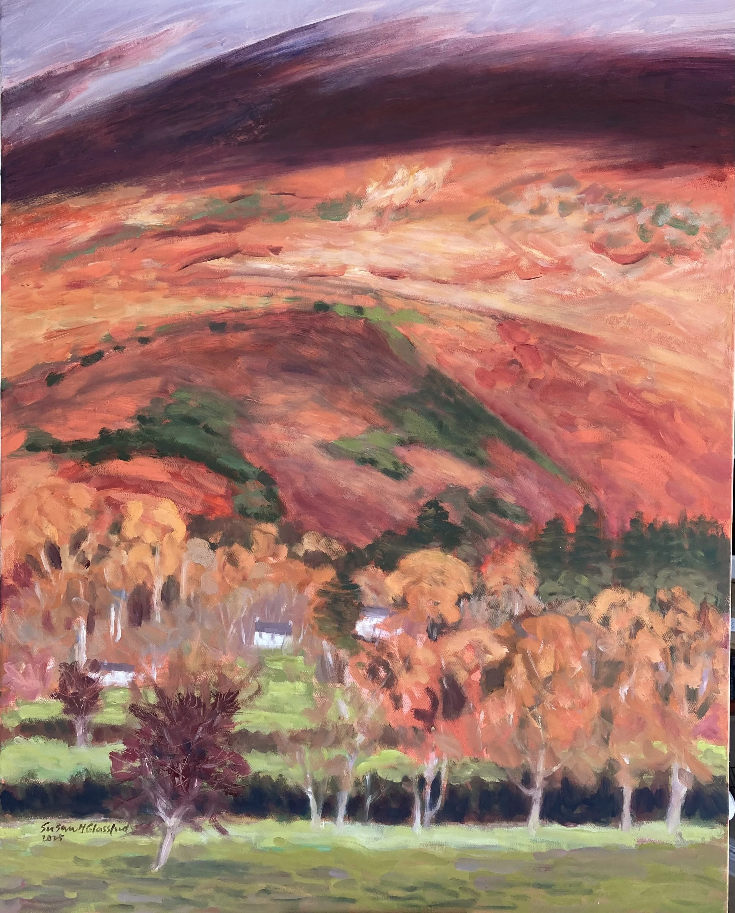 Sue has lived and worked in north Cumbria for over 40 years so the local landscapes of the Solway, Hadrian’s wall and the Lake District, are familiar subject matter.